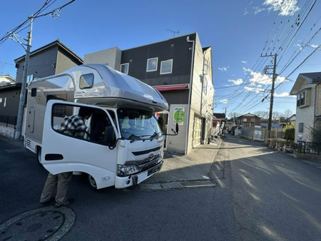 - 店舗入り口はすこし狭い道路です