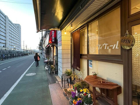 - 店舗入り口はすこし狭い道路です