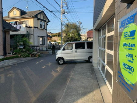 - 店舗入り口はすこし狭い道路です