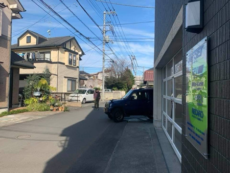- 店舗入り口はすこし狭い道路です
