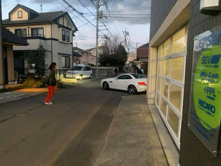- 店舗入り口はすこし狭い道路です