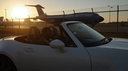 ロードスターの運転席に座った