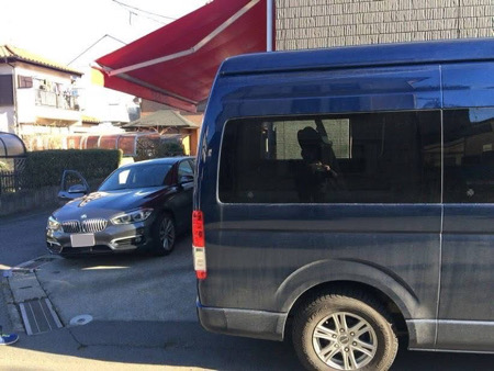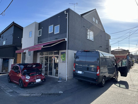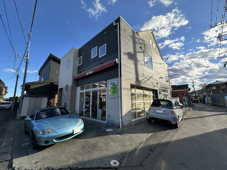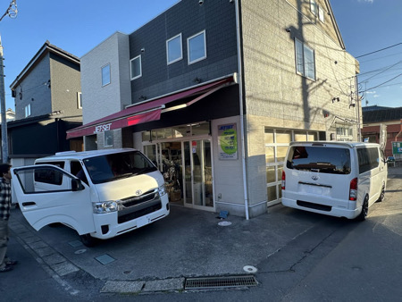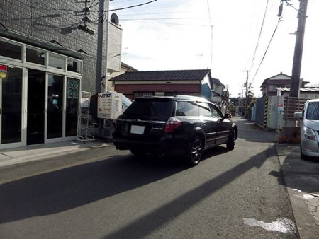 - 店舗入り口はすこし狭い道路です